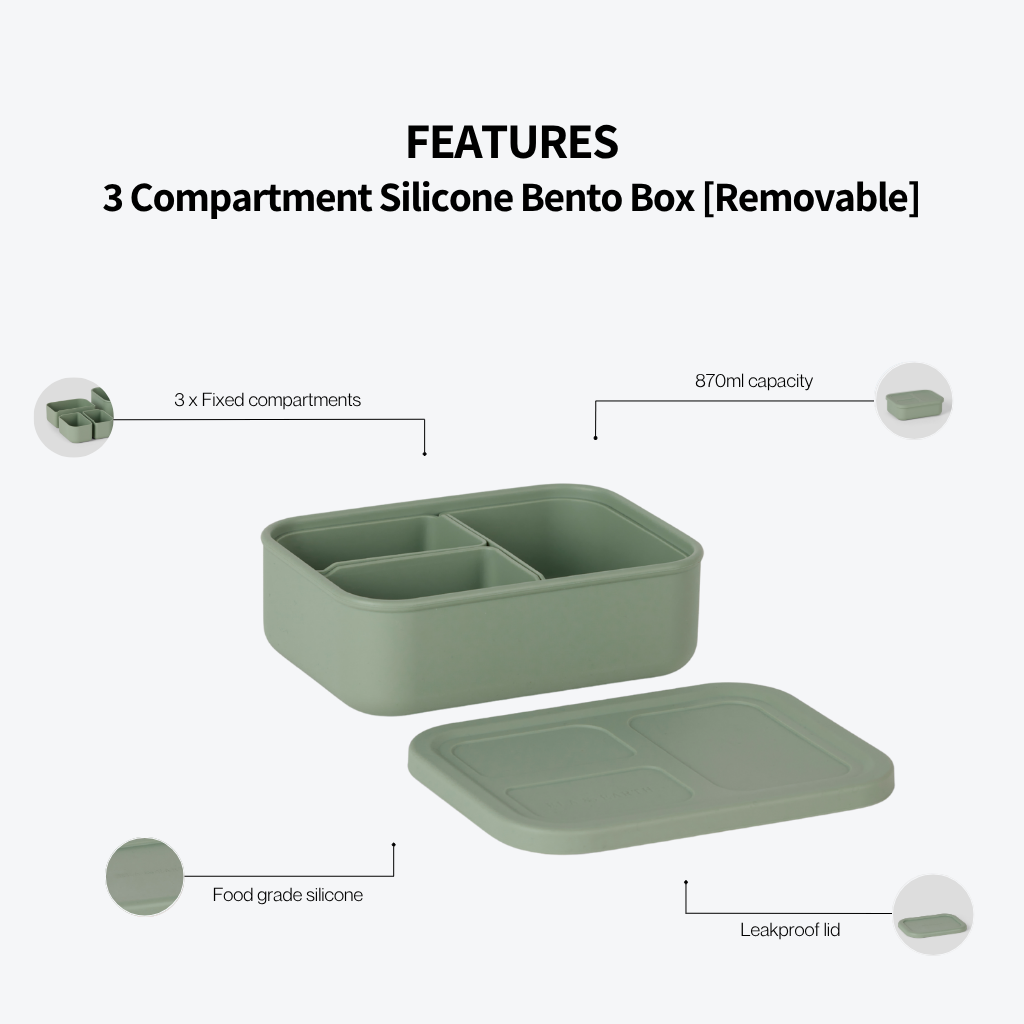 Sage Green - 3 Compartment Silicone Bento Box [Removable]
