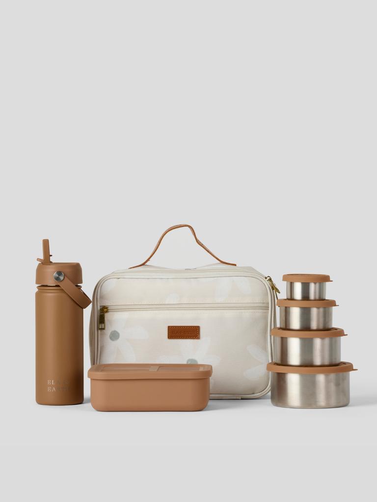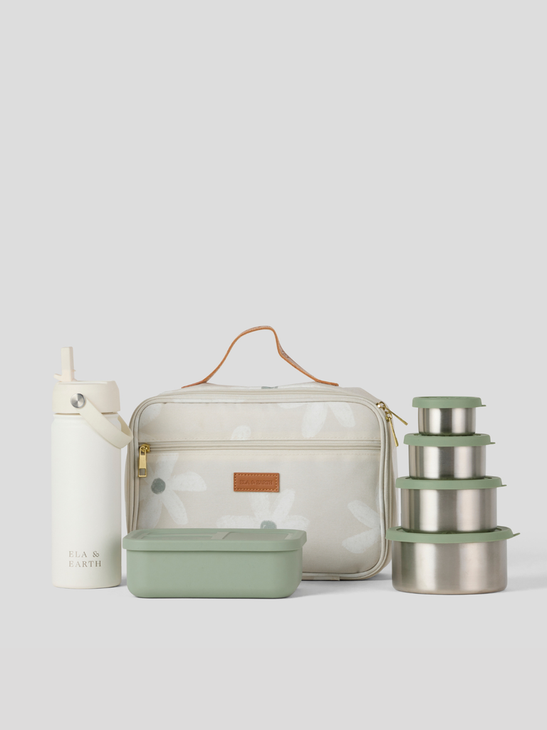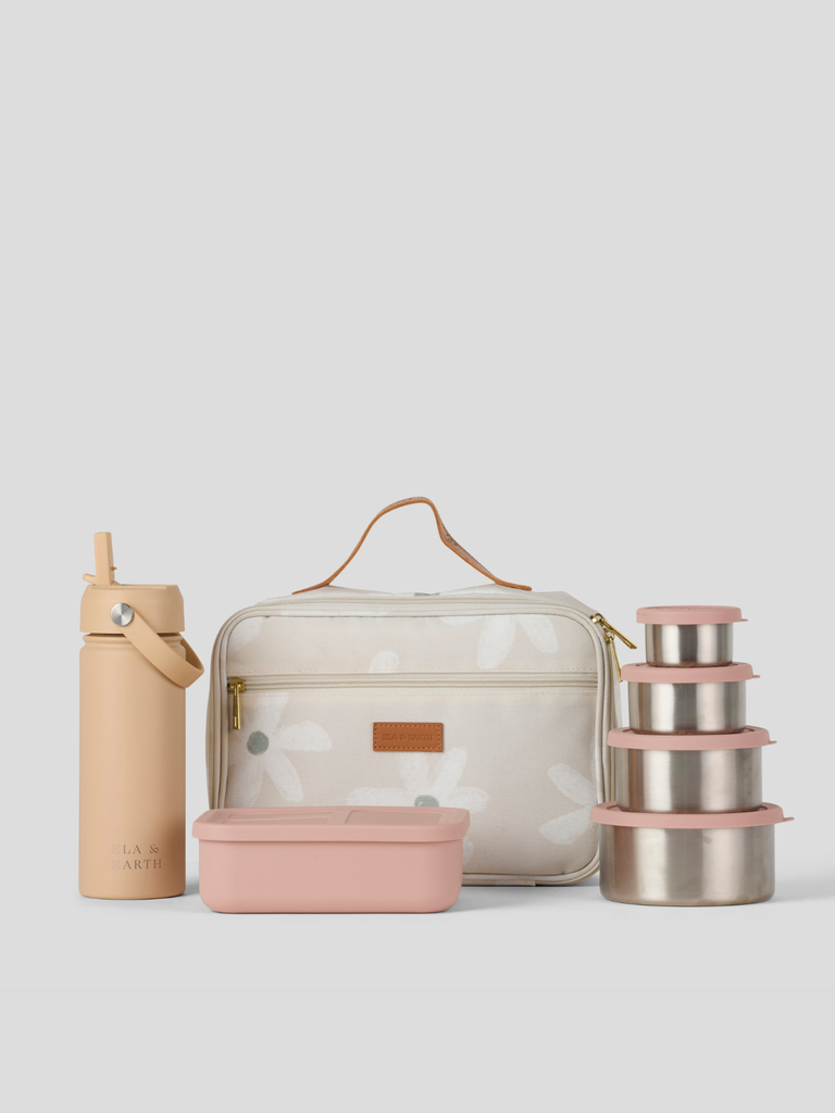 Our Deluxe Kids Lunchware Set is all about making mealtime easy, organised, and fun. This set includes a 3-Compartment Bento Box with removable compartments, a Set of 4 Nesting Containers, a 550ml Insulated Water Bottle, and one of our best selling Kids Lunch Bags. Everything your little one needs for school or weekend adventures!