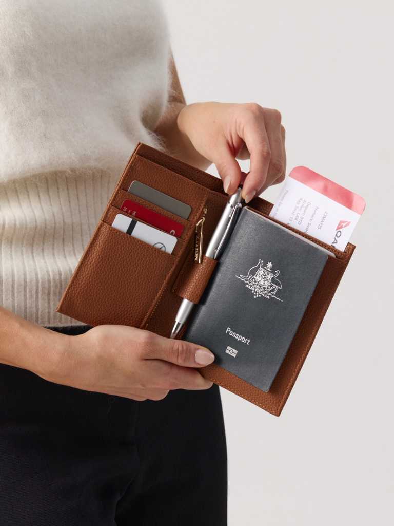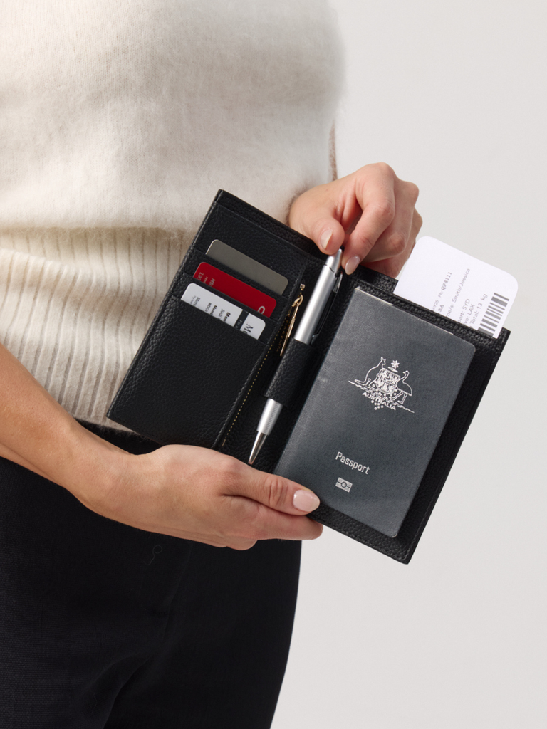 Meet the travel companions you won’t want to leave behind. Thoughtfully designed and crafted in premium vegan leather, our passport wallets keep your essentials secure and stylish, from boarding to baggage claim. Wherever you're headed, start here!
