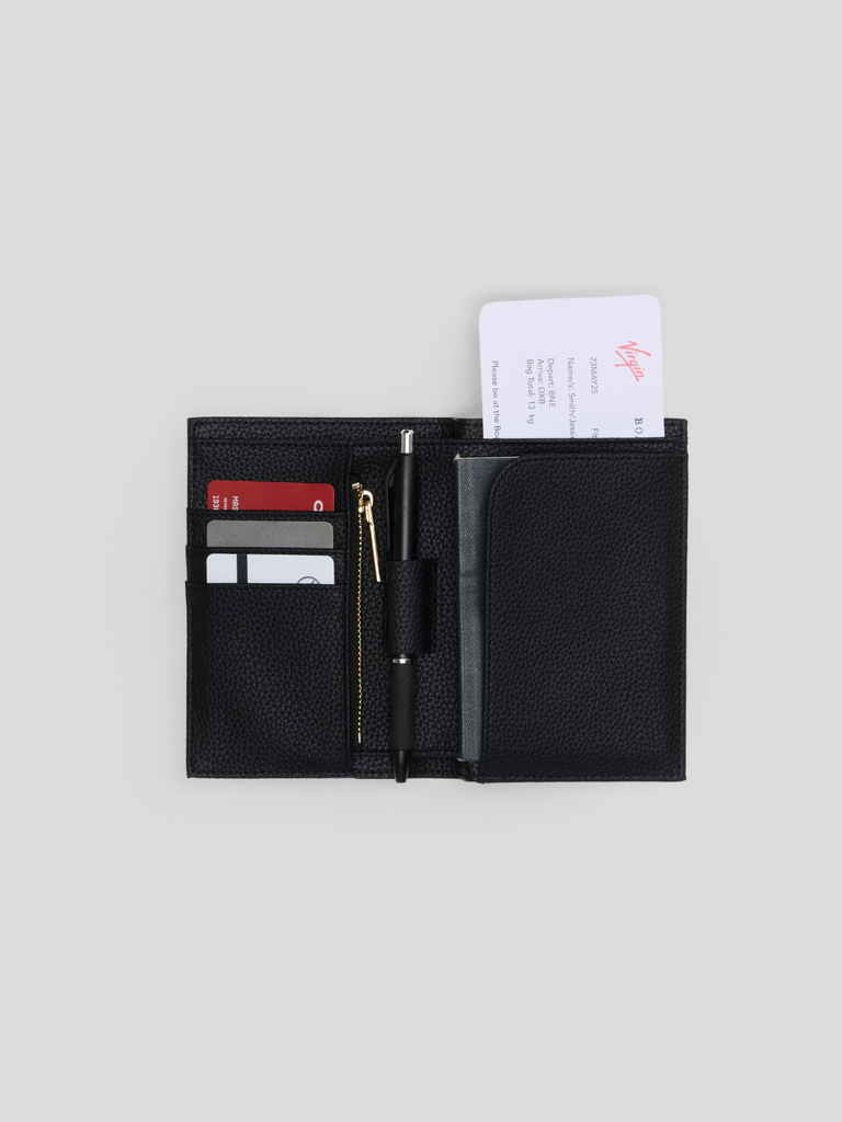 Made for the modern traveller, inside you’ll find three card slots, a pen holder, a cash sleeve, an internal zip compartment, and space for a single passport. Available in four timeless colours to suit your travel style.