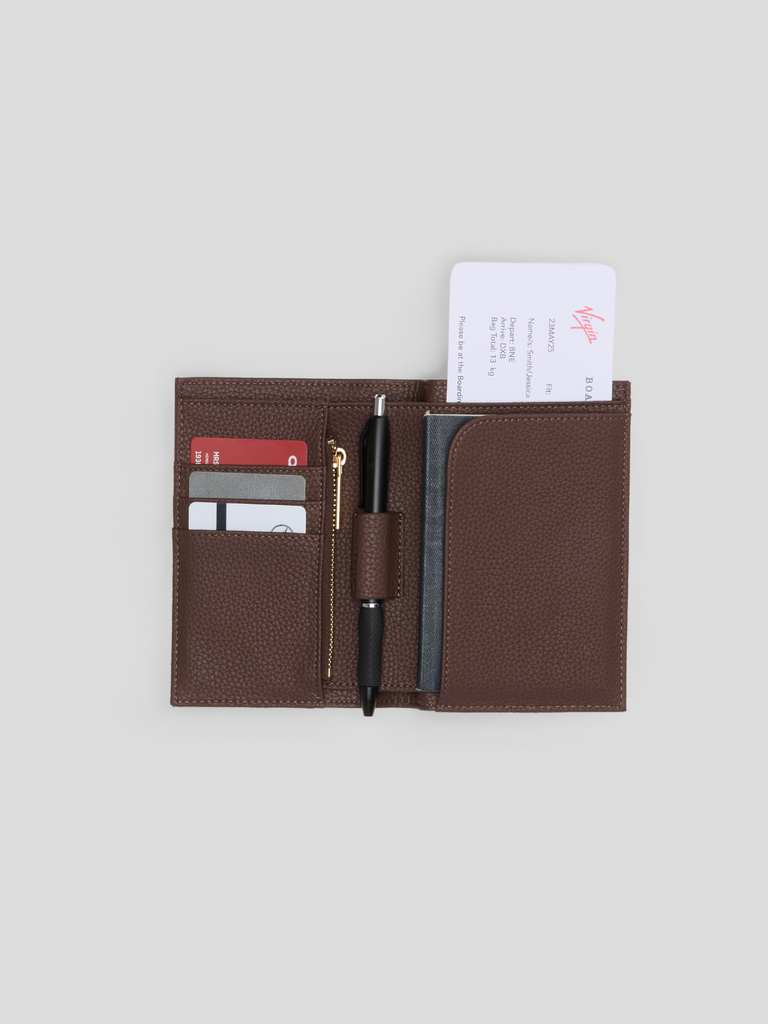 Made for the modern traveller, inside you’ll find three card slots, a pen holder, a cash sleeve, an internal zip compartment, and space for a single passport. Available in four timeless colours to suit your travel style.