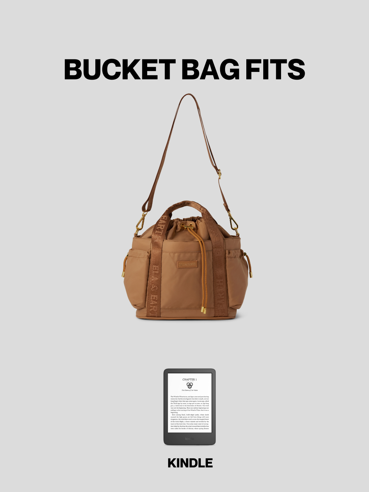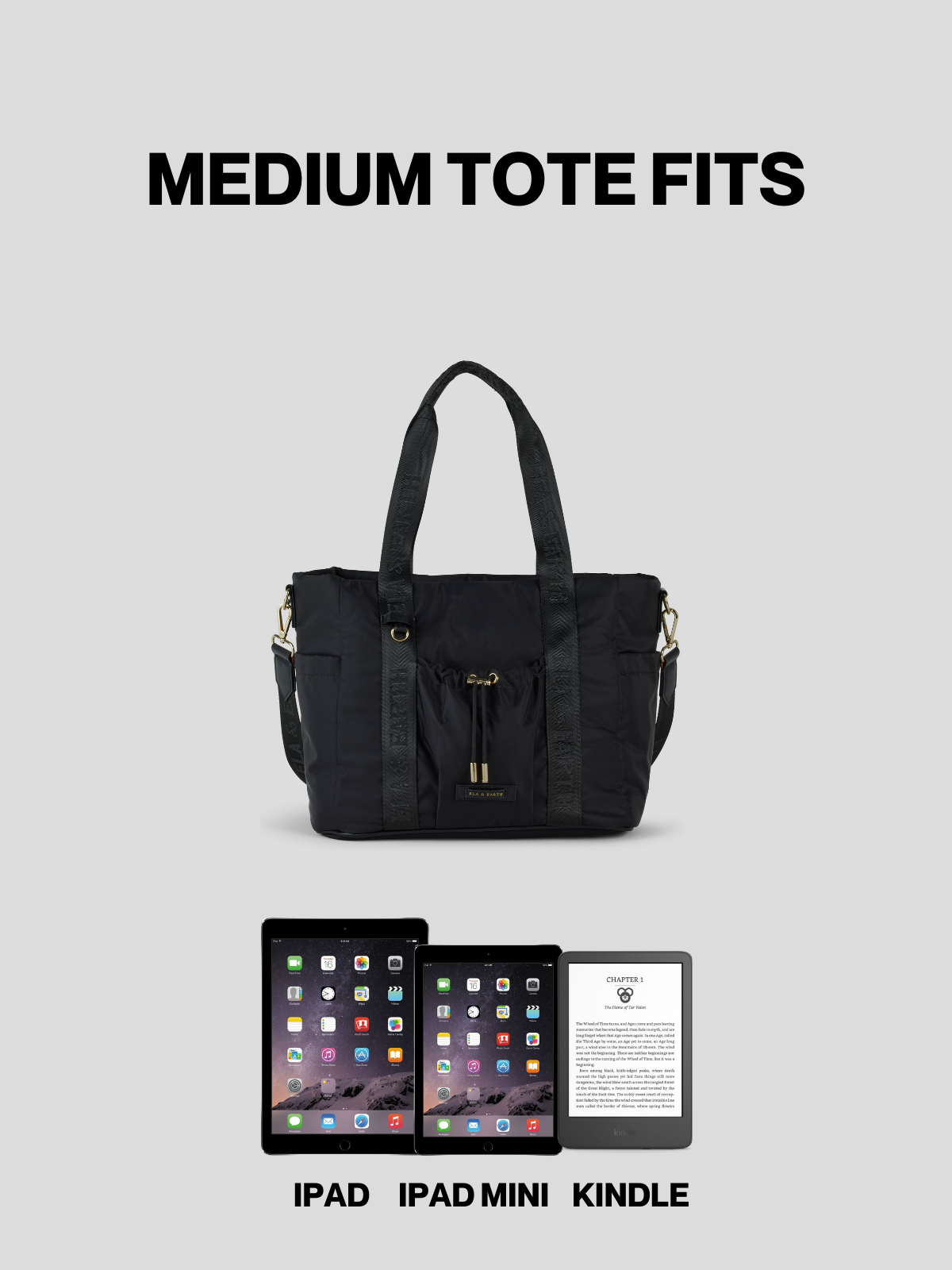 The Odyssey Tote Bag features luxe gold hardware, a built-in luggage band, carry handles and an adjustable strap.